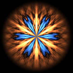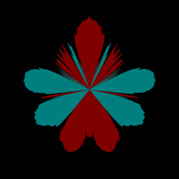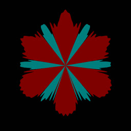 ACF is a periodic and even function and so it can be naturally rendered in polar coordinates. In most cases, ACF has a very elaborate structure. Below are some examples, where red = ACF > 0 and blue = ACF < 0.