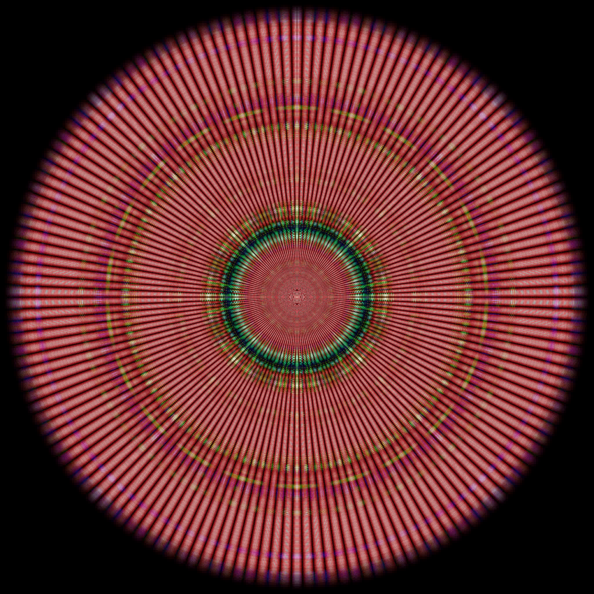 , producing 8 pictures. Cosine waves are symmetric (even), so they look better in polar coordinates, as shown above. The sum of squared amplitudes corresponds to weight of each picture, e.g. if the total sum A[0]^2+...A[N-1]^2 = 1