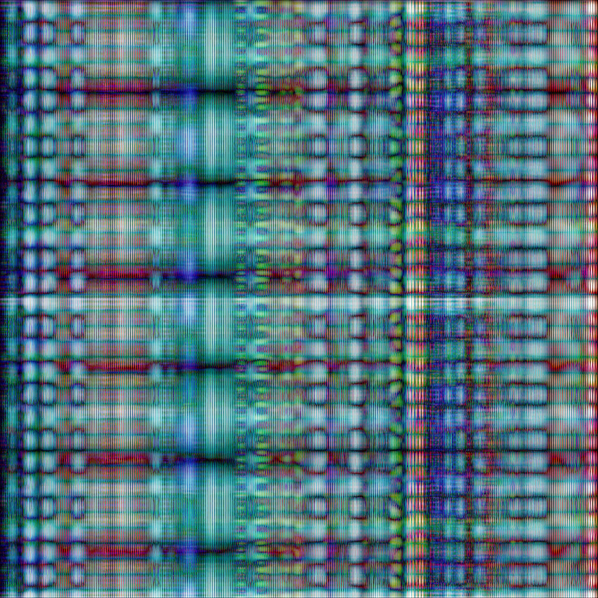 cosine waves can be combined back into a time-domain signal. This corresponds to convolving the original signal with a certain kernel. Each cosine wave is colored according to its frequency, so their sum appears quite colorful: